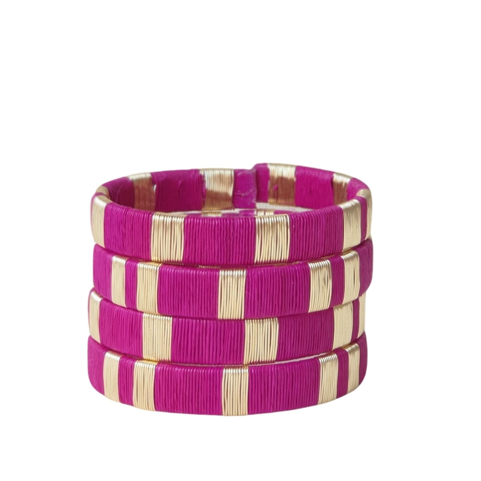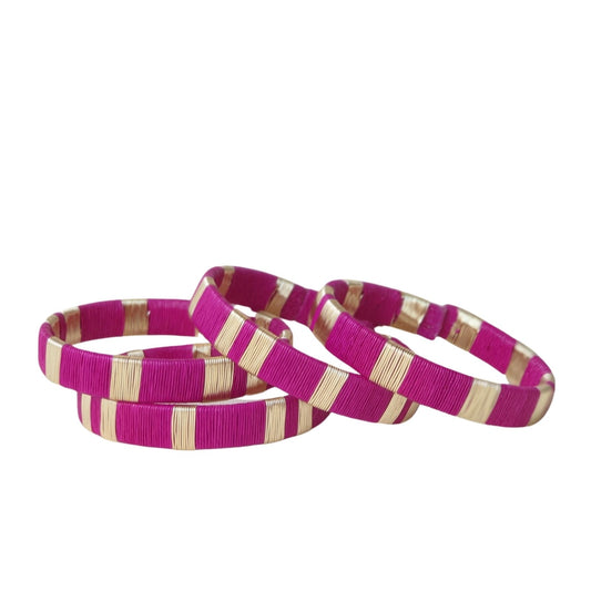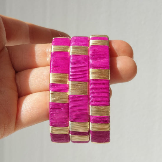 Fuschia Pink -14K Gold Bangle Set (3)