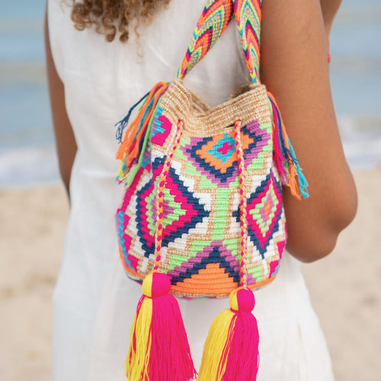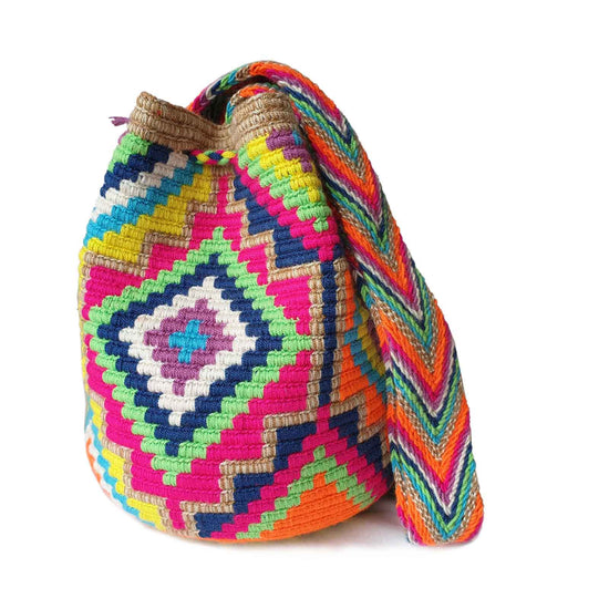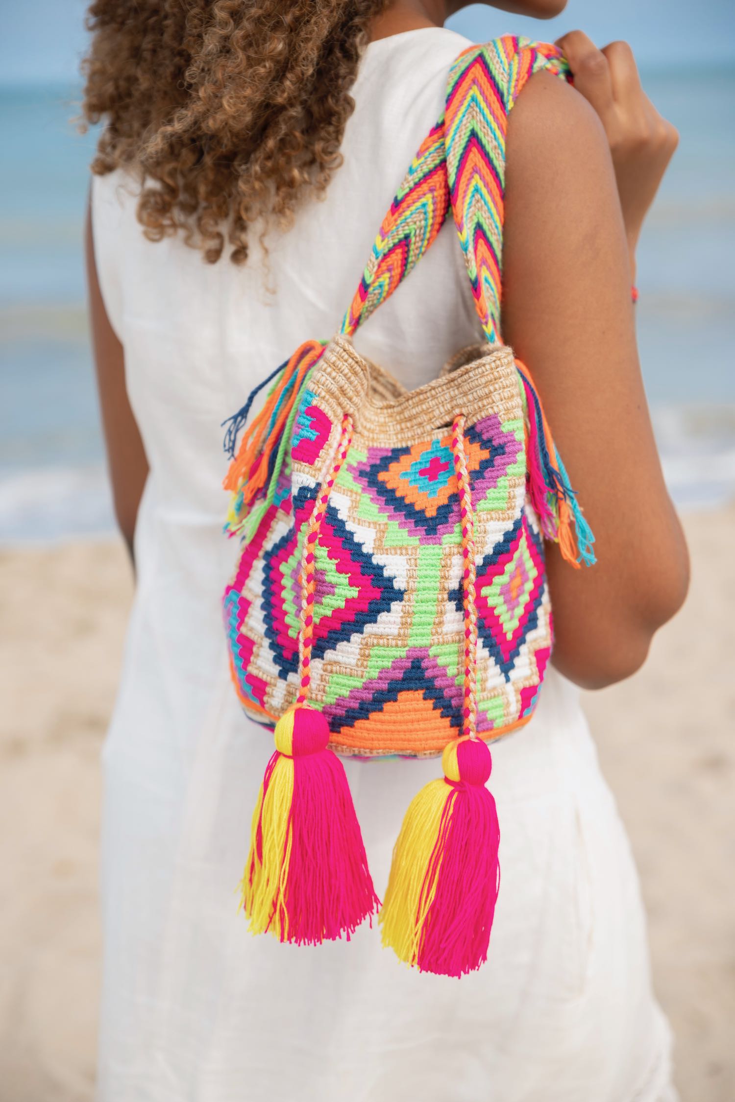 This crochet Wayuu bag is a testament to the dedication and skill of its creator, it represents 6-10 days of meticulous work by a single artisan.