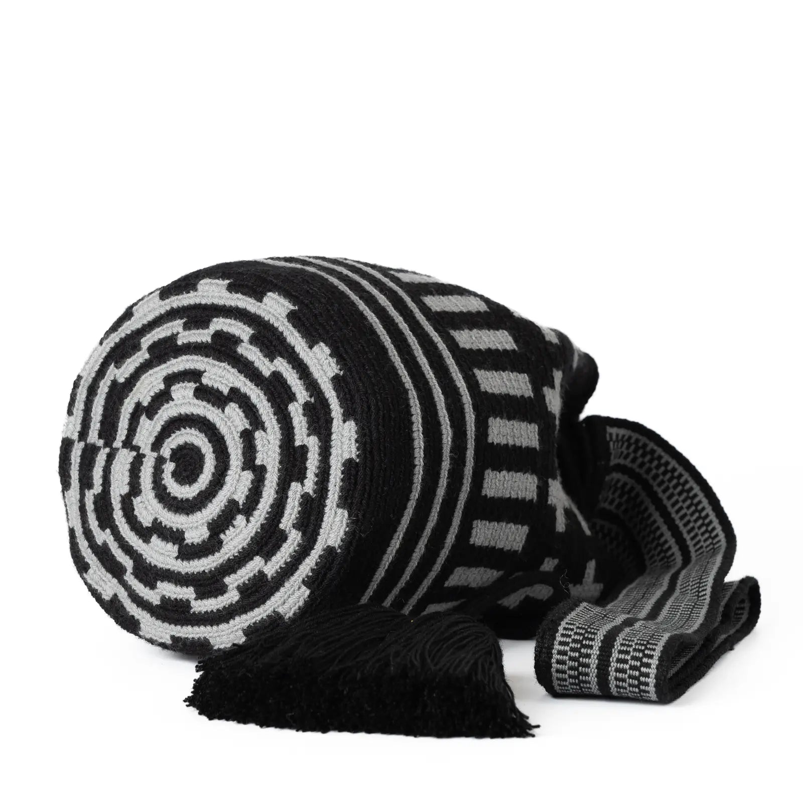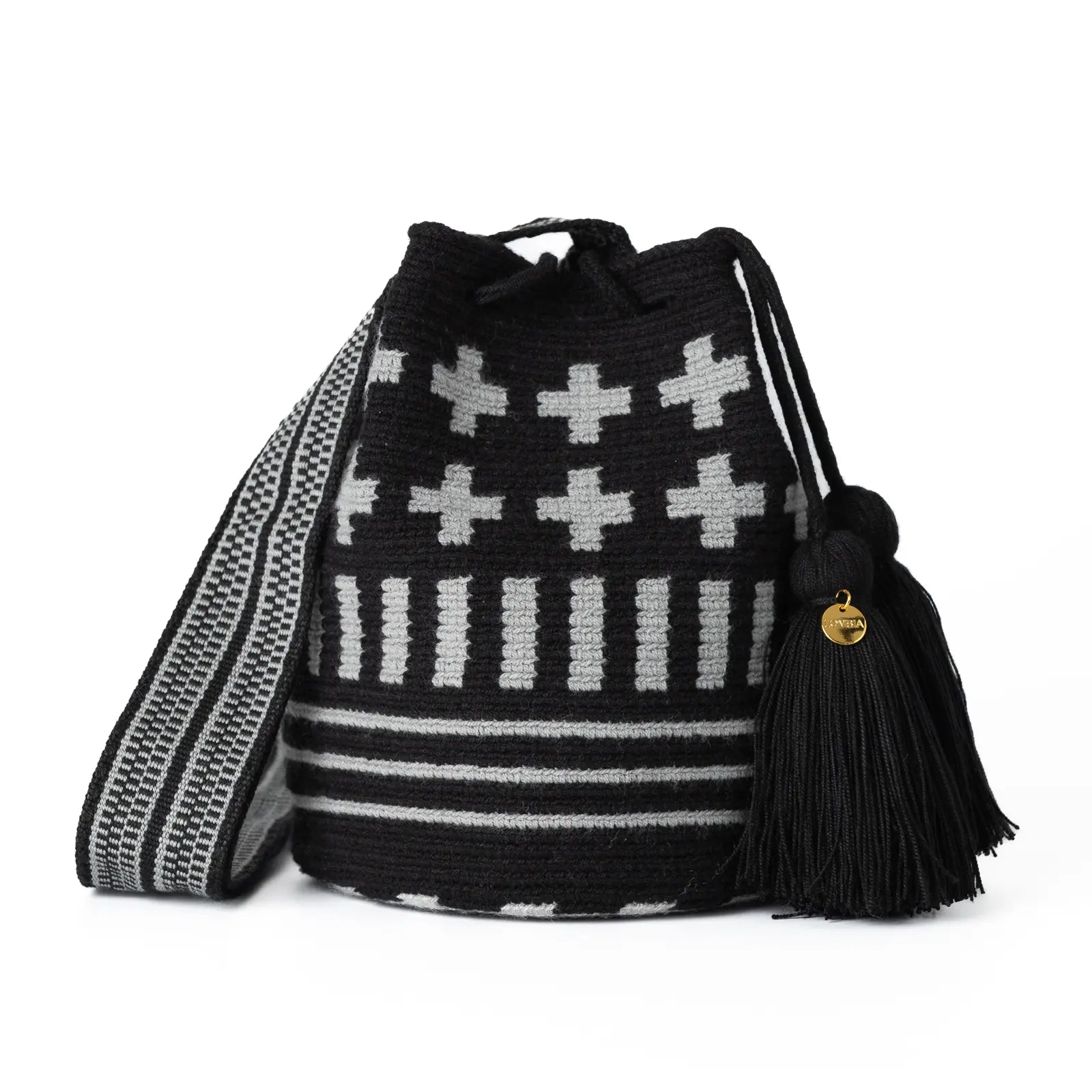 This small black Wayuu crossbody bag features the same bold pattern and artisan crochet technique as our signature summer minis — reimagined in a timeless black for a versatile, everyday style.